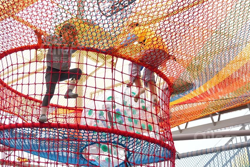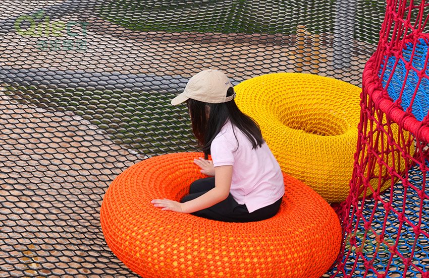 那色彩鮮艷的繩網空間