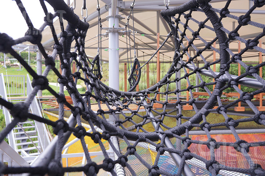 繩網采用進口高密度材質,即使多人同時攀爬也穩如磐石;網格間距經過人體工學測算,既保證安全性,又讓腳掌能精準踩到支撐點——這不是簡單的“繩網區”,而是用專業守護的“親子互動空間”。