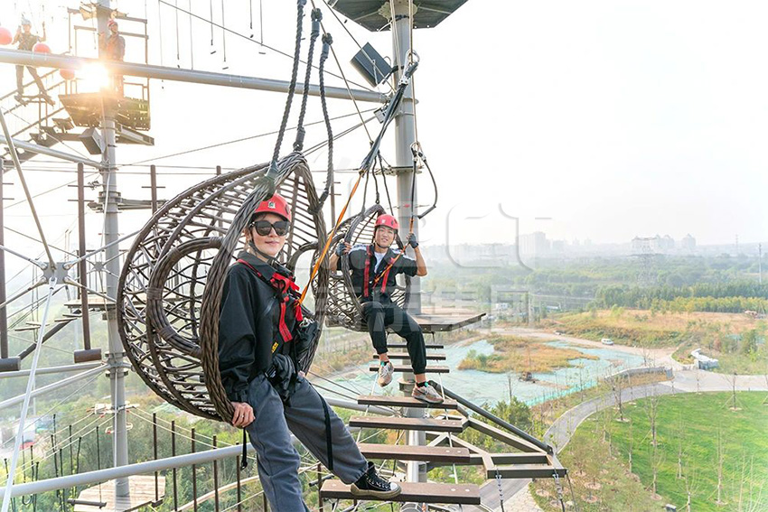 九月底,全亞洲最大的探險(xiǎn)塔在北京溫榆河公園拔地而起,這座總高度29.8m,共設(shè)6層,能同時(shí)滿足兩百多位游客探險(xiǎn)挑戰(zhàn)的探險(xiǎn)塔,設(shè)備占地面積約1100平方米,開啟全新潮流生活方式,成為北京市民一種新的時(shí)尚戶外活動(dòng)。