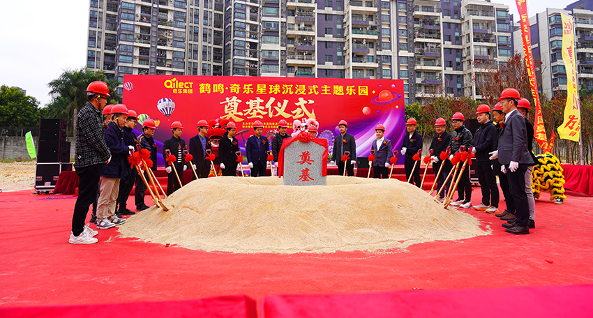 鶴鳴·奇樂星球沉浸式主題樂園項目的開工奠基,標志著奇樂集團與鶴山市攜手打造的最新一代綜合型沉浸式主題樂園正式起航,鶴山市文娛面貌與發展以此跨入新時代。