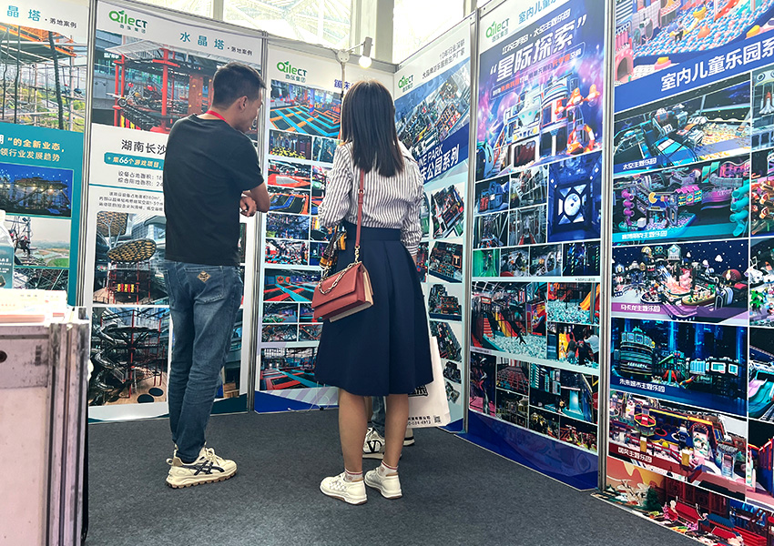 此次展會我司推出了一批有特色的創新產品。比如新一代IP主題探險水晶塔、奇樂戶外奇幻星球系列產品、升級版水晶塔、鉆石塔、新融合概念室內樂園、潮流主題運動蹦床公園等。