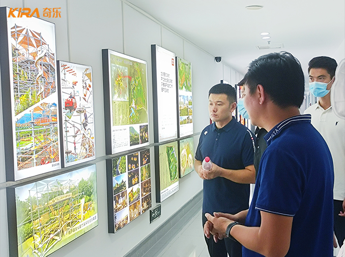 8月24日上午,東方佳園集團來賓代表到達奇樂集團科學城總部,在集團總裁易總的引導下,各位來賓先后參觀了奇樂集團文化墻、總部辦公區、研發設計部等重要場所,詳細介紹了奇樂集團在過去歲月中的發展歷程、企業宗旨以及未來展望,各位來賓充分肯定了奇樂集團在過去幾年當中所取得的一系列成績,并針對文化旅游項目的規劃發展提出了相關建議。