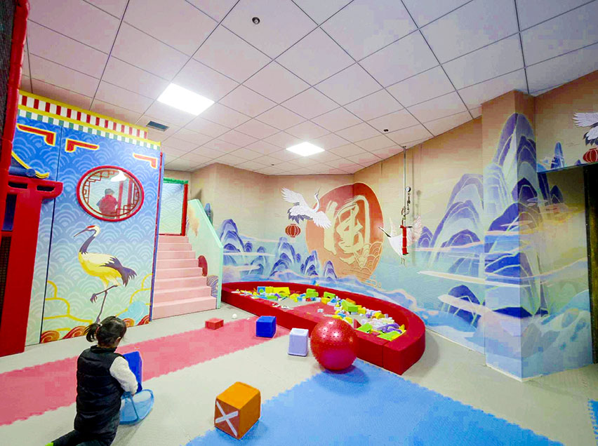 郯國古城游樂園以兒童游樂為中心,融入多種親子互動、少兒益智的優(yōu)質(zhì)項目,包括了滑梯、球池、蹦床、拓展、椰子樹、彈跳迷宮等項目,玩法豐富有助于兒童身心健康成長。國潮風主題形象地將帶有濃郁傳統(tǒng)節(jié)日文化色彩的喜慶元素展現(xiàn)出來,從而增強了樂園文化屬性。真正將中華文化精粹植入樂園項目中,為游客打造一個傳承悠久歷史文明的古風世界,使孩子們在玩樂中從小培養(yǎng)起對傳統(tǒng)文化的認同與自豪感。