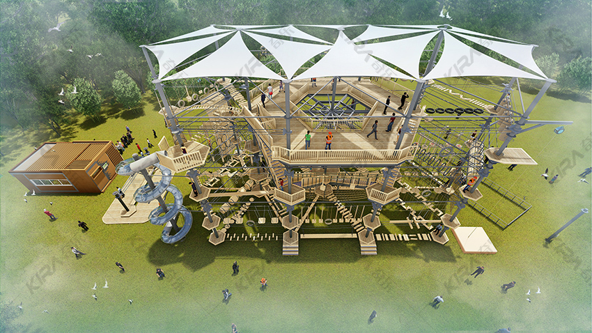 本項(xiàng)目適用于各種親子主題類(lèi)的樂(lè)園,巧妙運(yùn)用“熊貓”IP造型設(shè)計(jì),集拓展、探險(xiǎn)、滑道、飛索、蹦極、不銹鋼滑梯、攀巖、爬網(wǎng)等46種不同運(yùn)動(dòng)體驗(yàn)的文化主題項(xiàng)目,結(jié)合“大灰熊”IP形象,融入相關(guān)設(shè)計(jì)元素,打造差異化的網(wǎng)紅IP主題性運(yùn)動(dòng)拓展?fàn)I地綜合體。