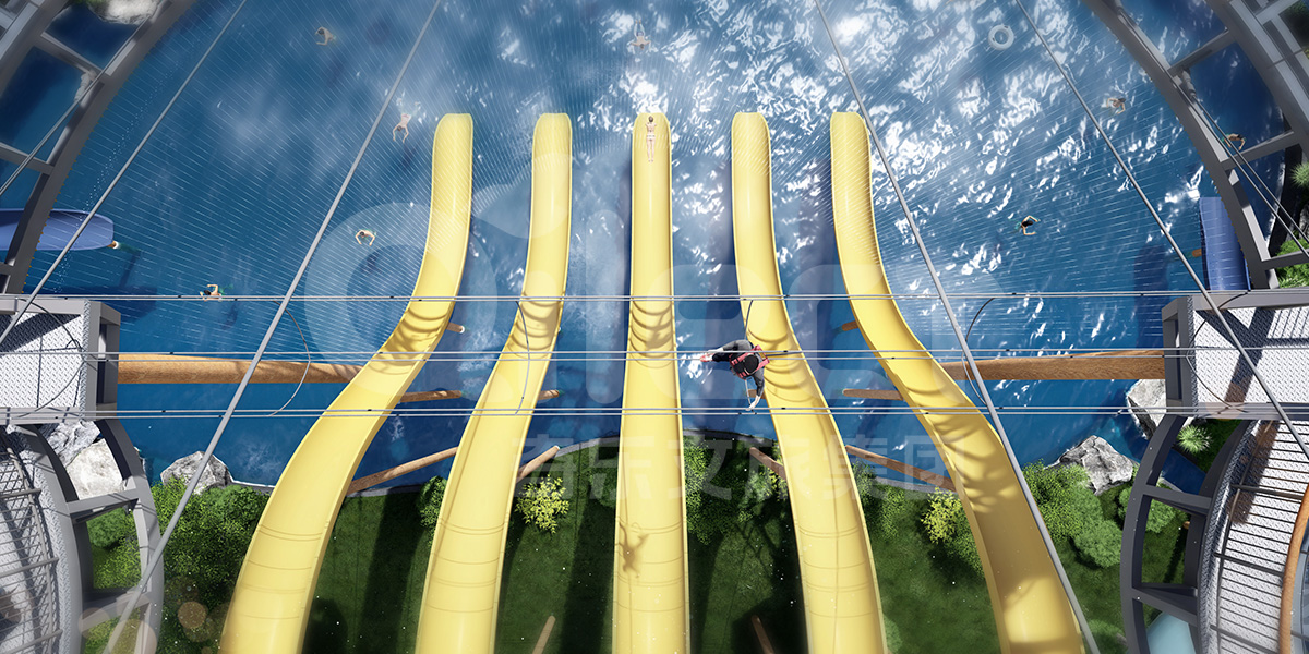 O 此外FUN-平地版另一個優勢在于可以發揮閑置空間將探險塔拓展項目融入其中,項目的底層設有多種挑戰項目分為不同難度,按照層高從低到高依次排列,游客穿好安全裝備即可沿著拓展線路進行體驗,每個項目都設有中轉站讓游客得以來回切換進行多重難度挑戰,新潮刺激、玩法多樣而又富有挑戰性,不僅適合成人進行拓展挑戰,同時兒童也能夠參與其中,絕對能夠令游客流連忘返、樂此不疲。