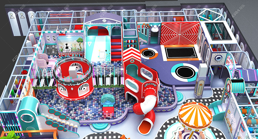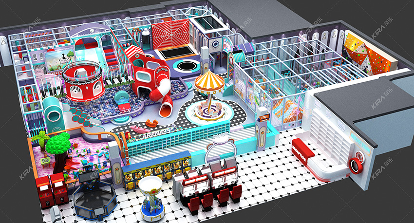 :螺旋滑梯、沙池、球池、互動(dòng)投影、蹦床蜘蛛墻、闖關(guān)打卡、兒童攀巖等。