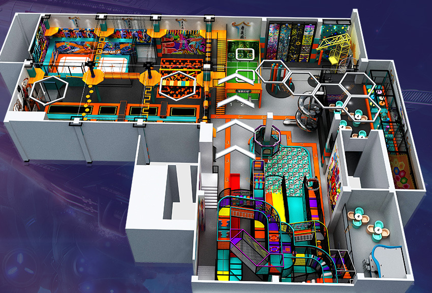 :專業蹦床、自由蹦床、走避墻、海洋球池,螺旋滑梯,波浪滑梯,互動投影,